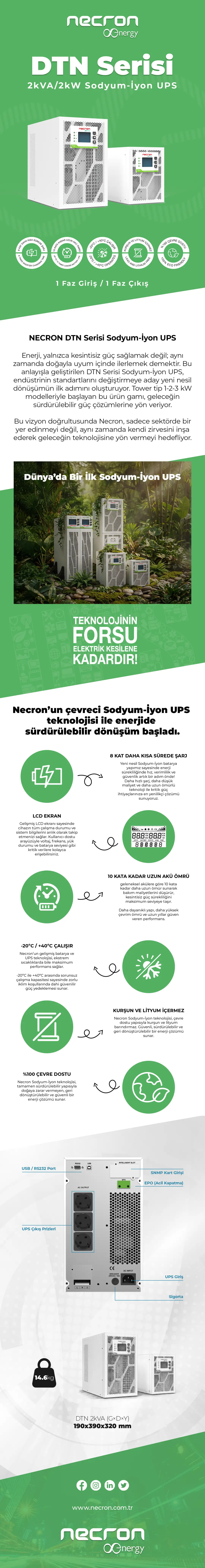 DTN Serisi 2kVA/2kW Sodyum İyon UPS