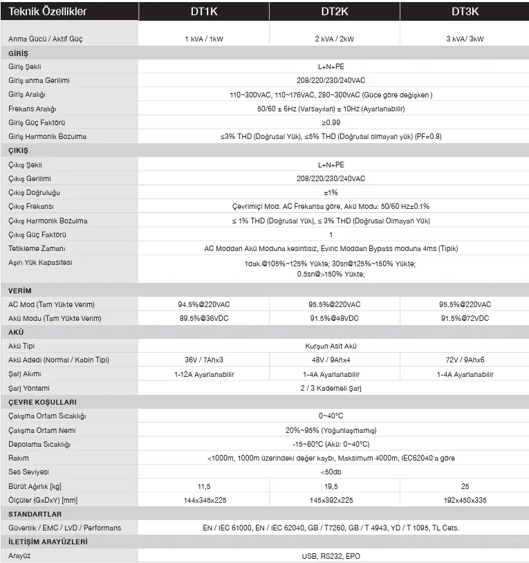 DT Serisi Online Çift Çevrim UPS, DSP mikroişlemci ünitesi sayesinde ev, ofis, laboratuvar için en önemli kritik görevlerin üstesinden gelir ve gelişmiş güç koruması sağlar. Rakiplerinin opsiyonel olarak sunduğu birçok özelliği standart haline getirmiştir. 1 çıkış güç faktörü ile rakiplerinden %10 daha güçlü olmasına ilave olarak verimi %5 daha fazladır. Ayrıca 12ampere kadar standart şarj kabiliyeti ile gerektiğinde uzun yedekleme sürelerini destekleyecek altyapıya sahiptir. Necron yine, son teknolojiyi temsil eden DT serisi ile bayrağı her zaman olduğu gibi zirveye dikmiştir.